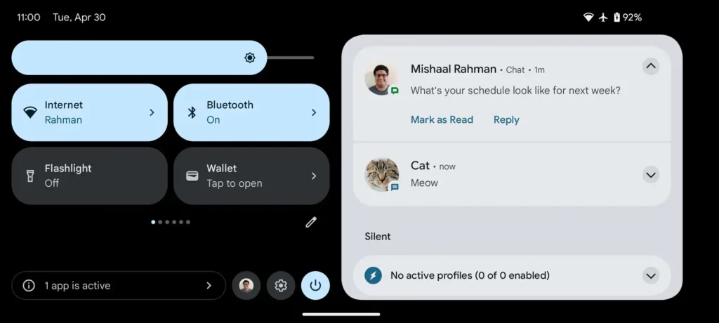 However, the forthcoming Android 15 update assures an improved landscape layout facility for both the lock screen and notification panel on phones. The present lock screen on Android 14 smartphones does not have a landscape mode at all. Noticeably, the notification panel does exist in landscape mode, but the fact is, it’s not ideal. A lot of wasted space appears; for instance, notifications only fill half the width, and crucial elements such as the brightness slider and user switcher are hidden until you swipe down again.