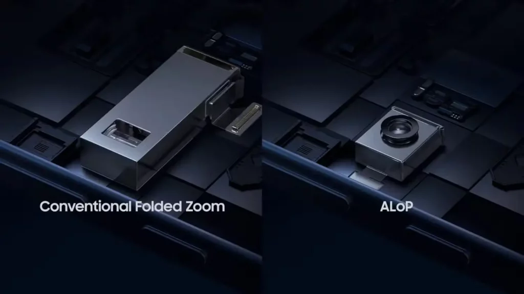 The newly introduced ALoP technology rearranges the lens placement in periscope cameras, making them more compact and efficient. Usually, conventional periscope cameras place the lenses between the prism and image sensor, but Samsung introduced a new way as its ALoP camera technology moves the lenses ahead of the prism.